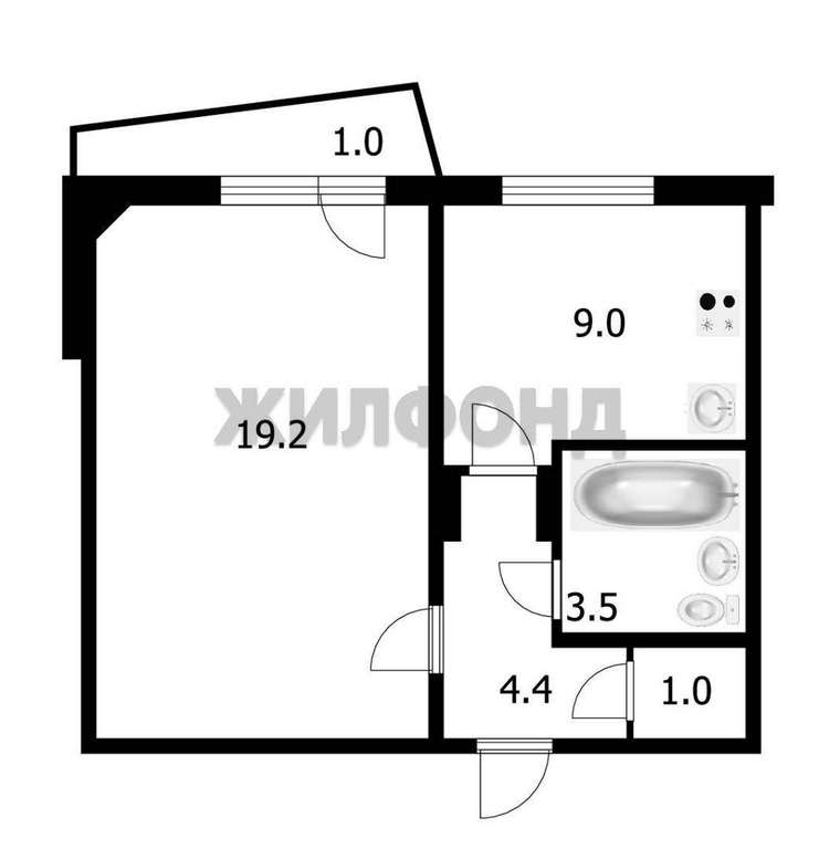 1 комн. квартира по ул. Краснообск пос. Общей площадью: 37.10 кв. м.