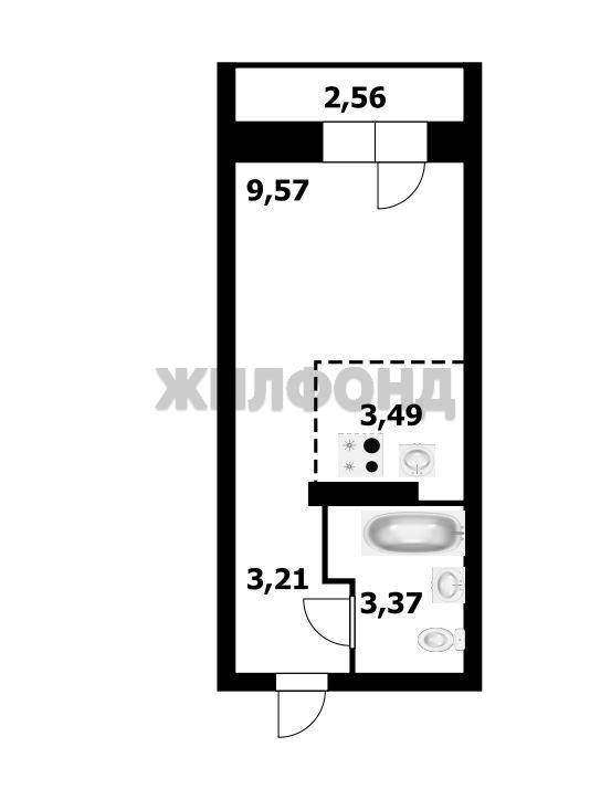 Общая площадь квартиры составляет 19,7 кв. м.