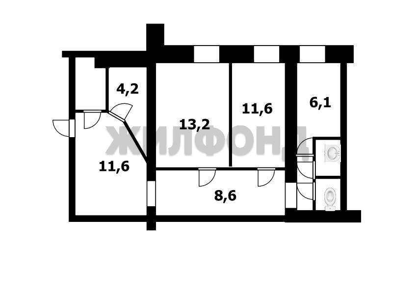 2 комн. квартира по ул. Краснообск пос. Общей площадью: 61.80 кв. м.
