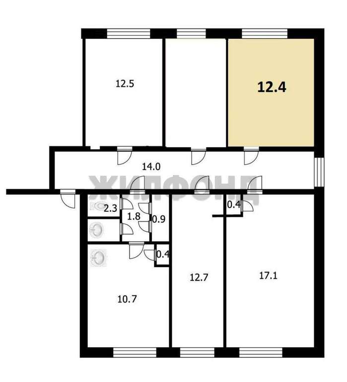 Комната по ул. Железнодорожная. Общей площадью: 12.40 кв. м.