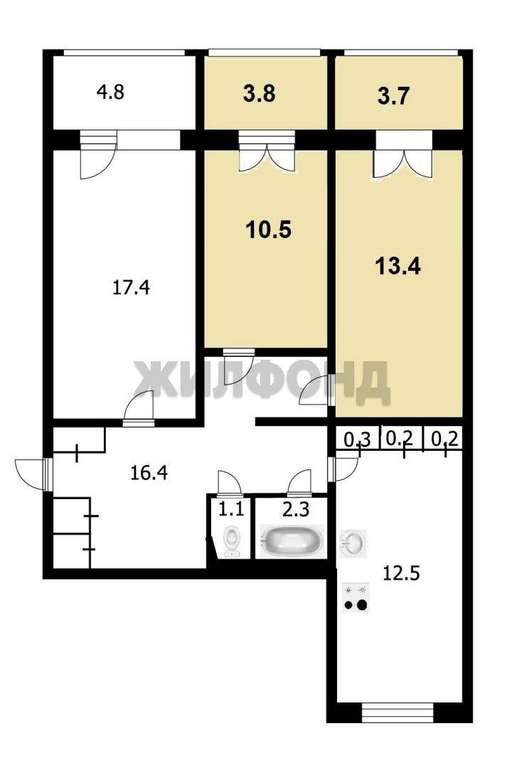 Продажа 2-х комнат, Новосибирск, Кропоткина ул., 130