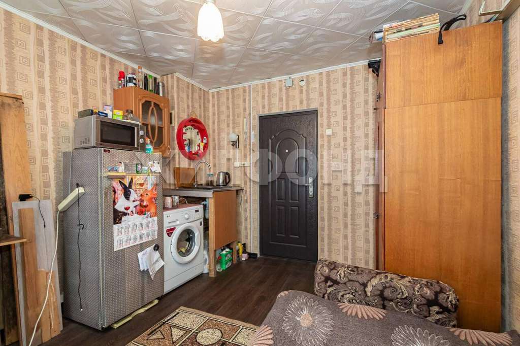 Вся мебель и холодильник остается. В комнату проведена вода, установлена стиральная машина.