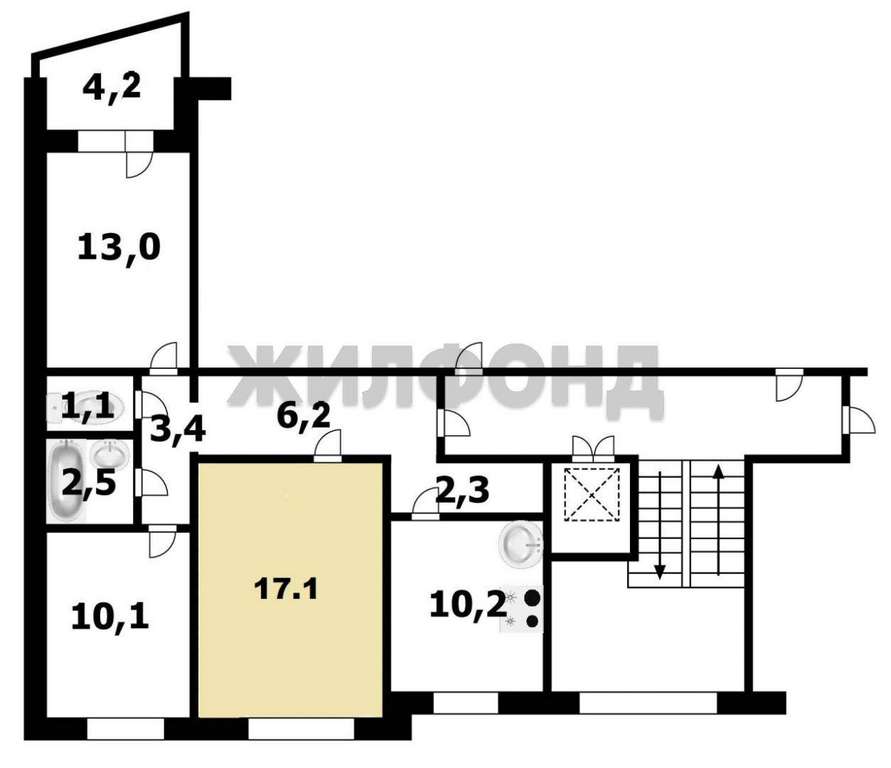 - 17.10 м2