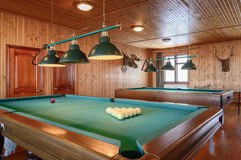 два бильярдных стола (русский бильярд и американка) и стол для настольного тенниса.