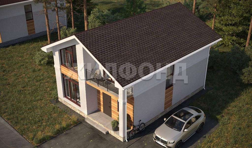 Фасад здания выполнен качественно и эстетично, украшен декоративными элементами из лиственничного планкена. Такое сочетание материалов придает дому особый шарм и подчеркивает индивидуальный вкус владельца.