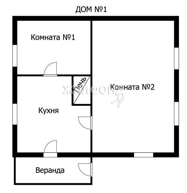Планировка 1.2 дома: две комнаты и кухня.,