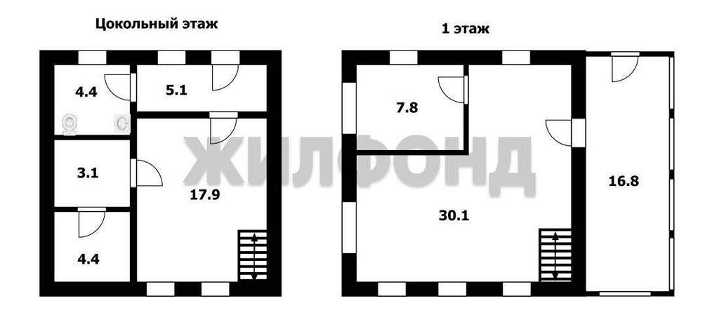 Общая площадь дома составляет 72.8 кв. м.