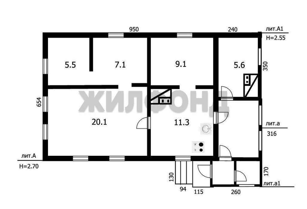 Материал стен: шлакоблок с деревянными перекрытиями.