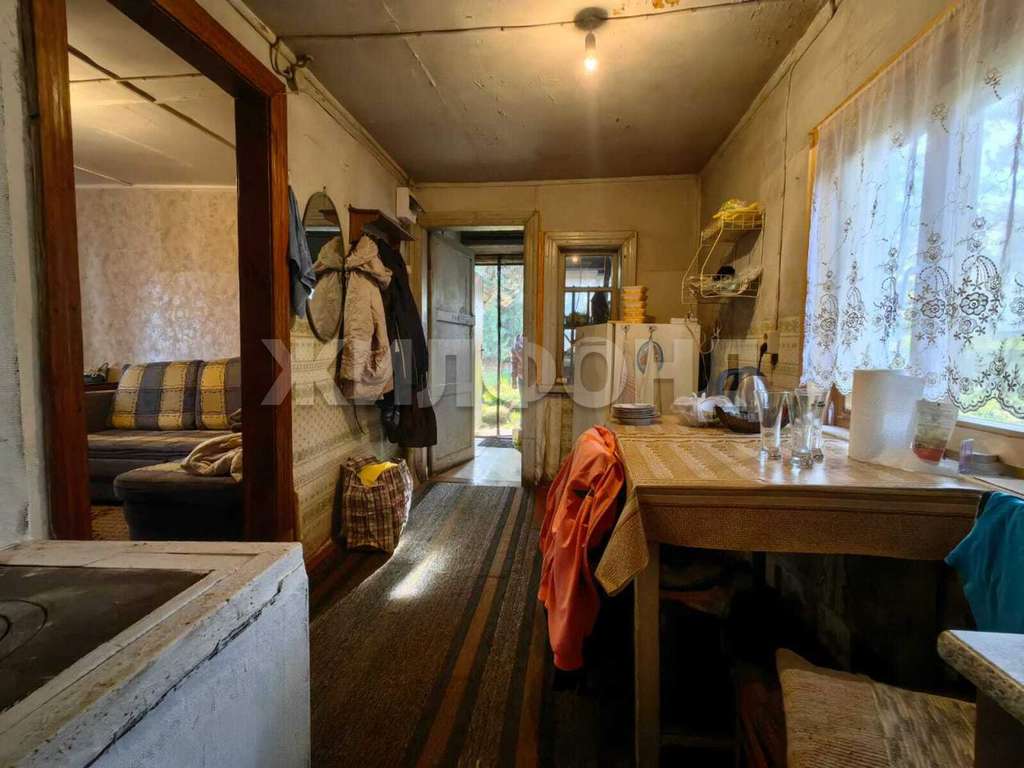 Дом с мебелью, техникой и утварью. Первый этаж состоит из комнаты , кухни и веранды . Второй этаж (одна большая комната и две кладовки) . Есть небольшая банька, туалет, теплица, летняя беседка. На участке растет смородина, малина крыжовник, жимолость, яблоня, вишня.