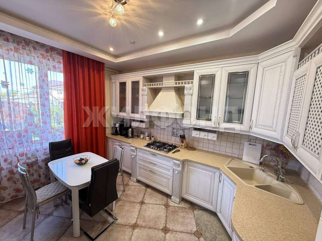 В доме сделан ремонт на высшем уровне, полы с подогревом, имеется просторная кухня (установлен кухоный гарнитур Камеа, доводчики Blum, немецкая бытовая техника) , гостиная, три спальни, две ванные комнаты. Все комнаты светлые и просторные.