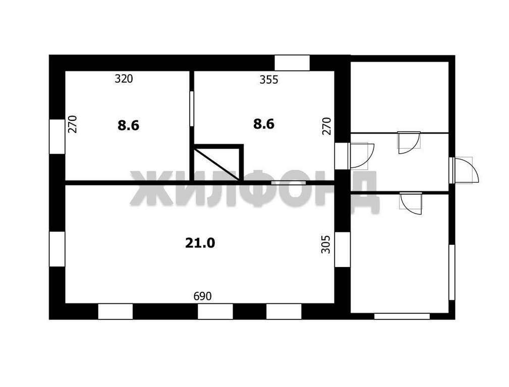 Дом площадью 40 кв. м, имеет две комнаты общей площадью 24 кв. м., а площадь кухни 7 кв. м. Высота потолков 2,5 м.