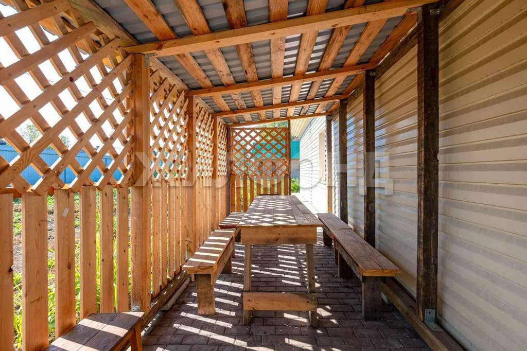 На участке есть постройка для хозяйственных нужд, где можно складировать различные инструменты, технику, мебель и т. д.