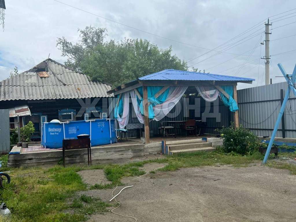 На участке есть небольшой огород, беседка, бассеин.