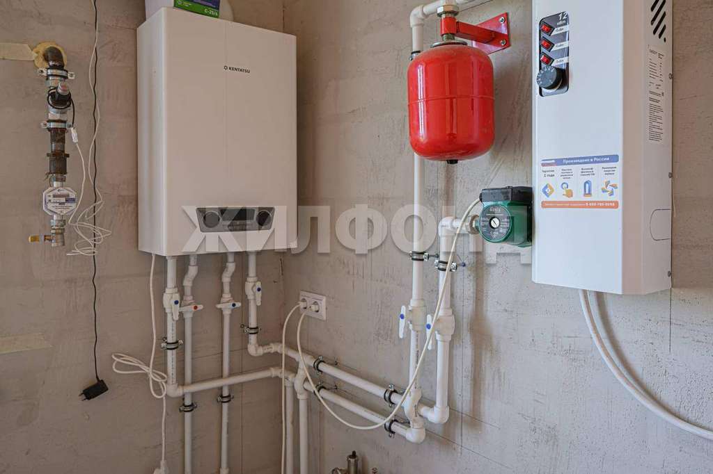 Городской водопровод заведен в дом, газ заведен на границу участка, в доме и установлен современный газовый котел и электро-котел (как резервный источник тепла) для отопления и нагрева горячей воды , смонтирована система отопления теплый пол на 1-м этаже. Канализация: оборудован септик и заведена в дом труба слива. Электричество 380 Вт.