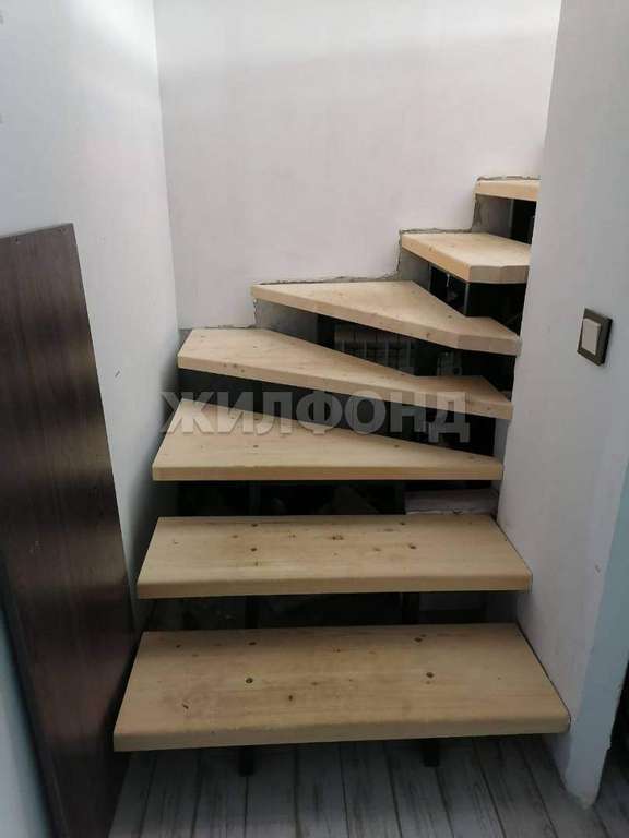 Лестница на второй этаж из железного каркаса, с деревянными ступенями.