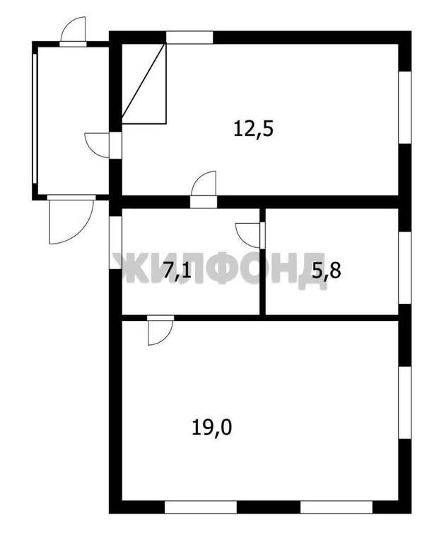 Площадь 45 кв. м., большая светлая гостиная 19 кв. м., спальня, большая кухня , санузел в доме.