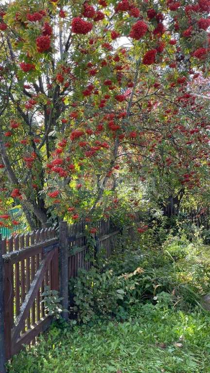 Также есть кустарники - малина, смородина, туя, рябина.