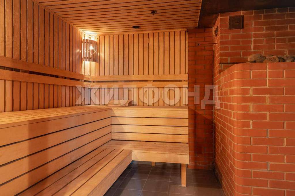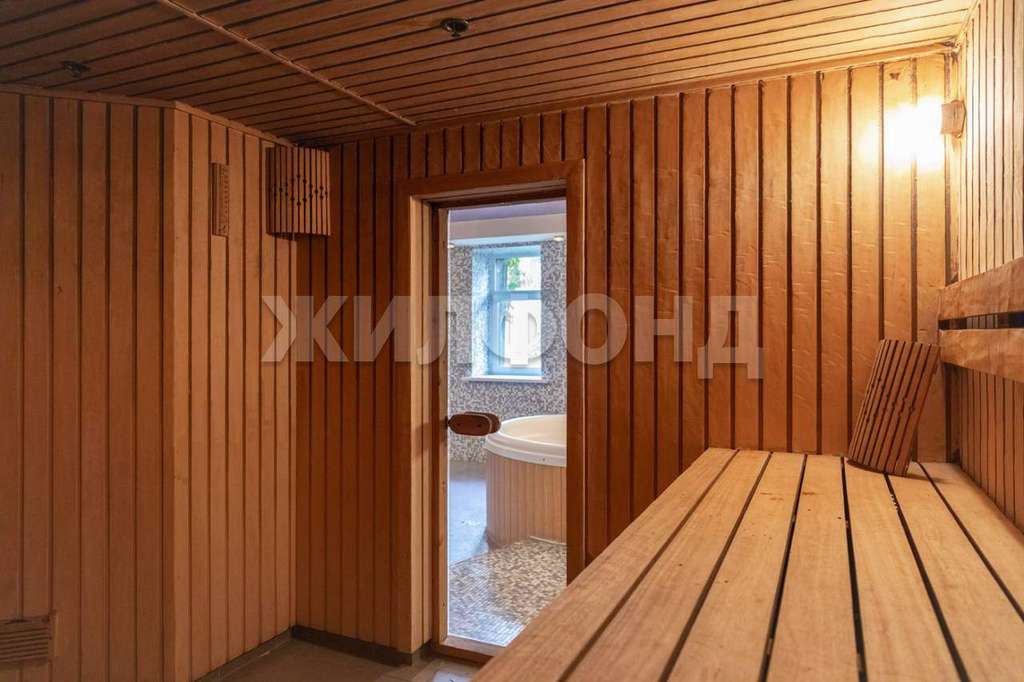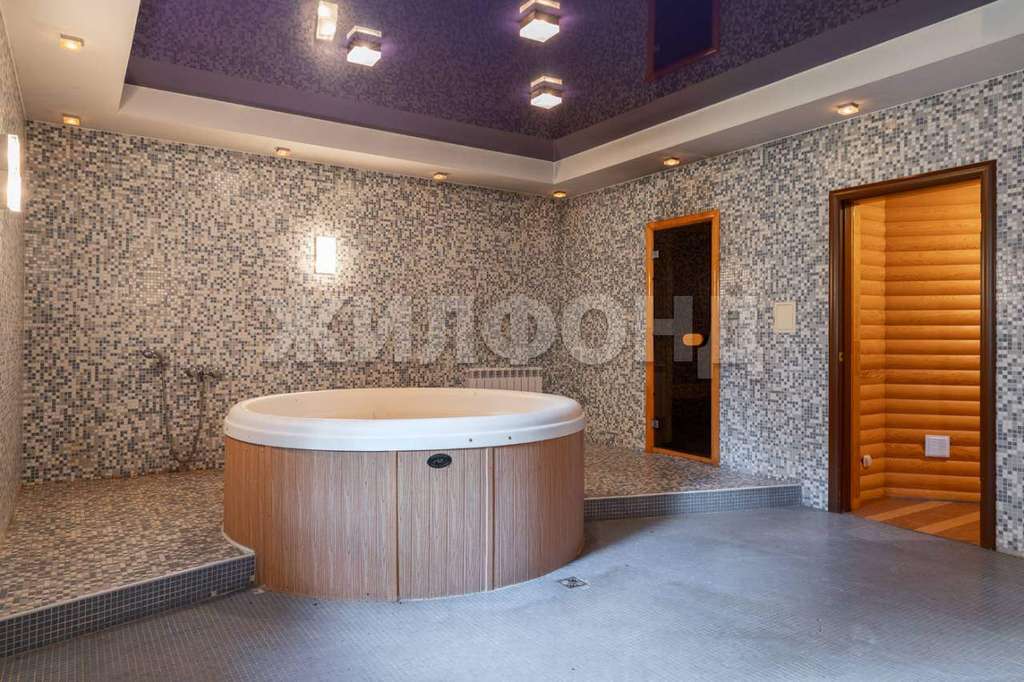 В доме S 280 м2, на первом этаже расположена жаркая русская баня, СПАзона с джакузи, комната отдыха S 38 м2, кухня S 15м2, санузел. Второй этаж свободной планировки S 110 м2. В подвальном помещении находится система очистки для уличного бассейна.