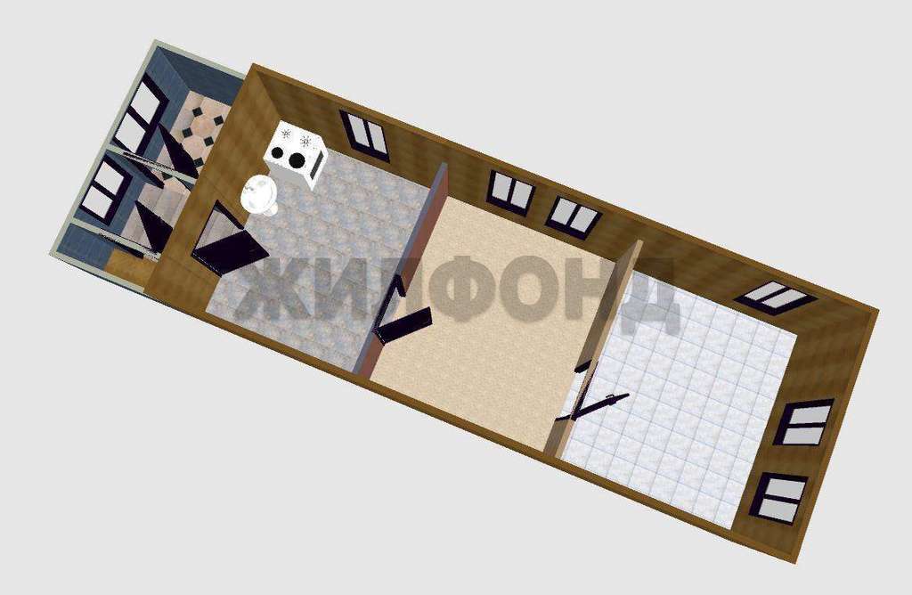 2 комнаты и кухня.