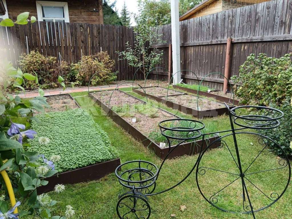 Участок 4 сотки, несмотря на небольшую площадь, очень функциональный, все распланировано ландшафтным дизайнером. Большая площадка с рулонным газоном, клумбы, туи, голубая ель, все кустарники с ягодой, грядки. Вобщем все, что нужно, при этом не требует больших усилий для поддержания порядка. Заведена на участок городская и поливочная вода.